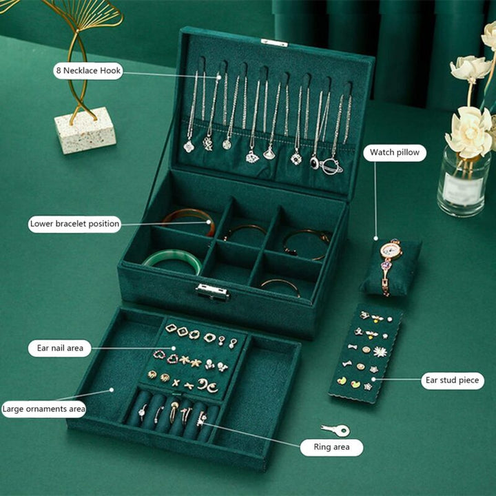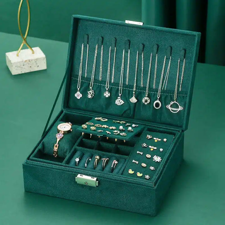 Boîte à Bijoux en Velours Vert – Élégance et Rangement Haut de Gamme