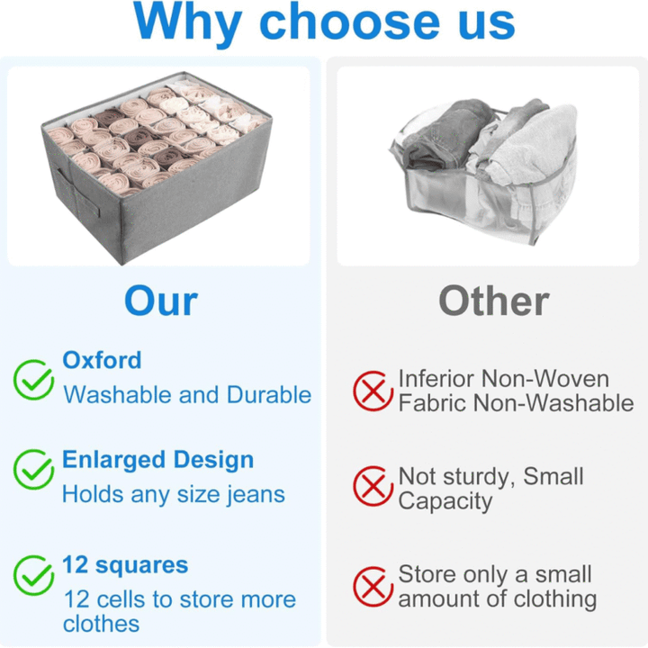 Boîte de Rangement Compartimentée en Tissu – 12 Cases, 42 x 30 x 23 cm