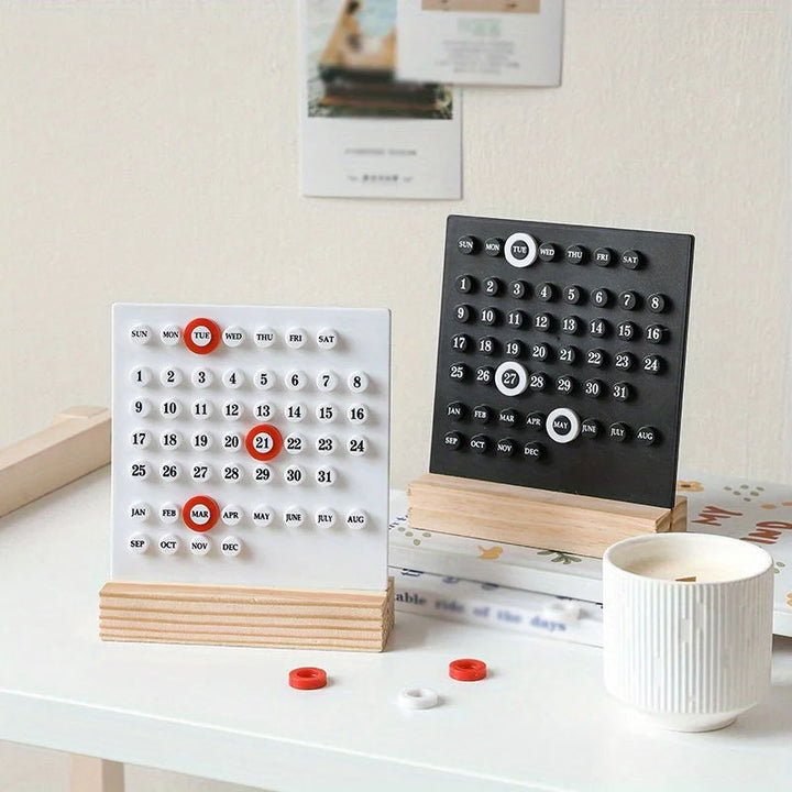Calendrier Perpétuel Magnétique – Design Moderne avec Socle en Bois