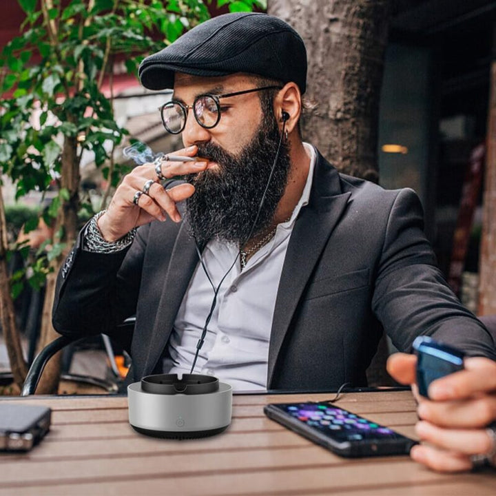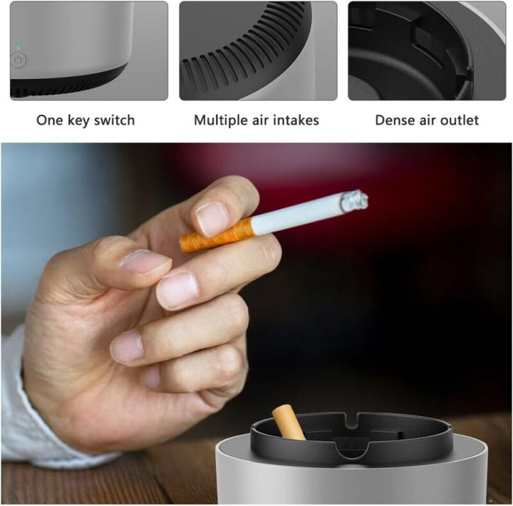 Découvrez le cendrier purificateur d’air électrique, conçu pour filtrer la fumée, neutraliser les mauvaises odeurs et protéger votre entourage du tabagisme passif.