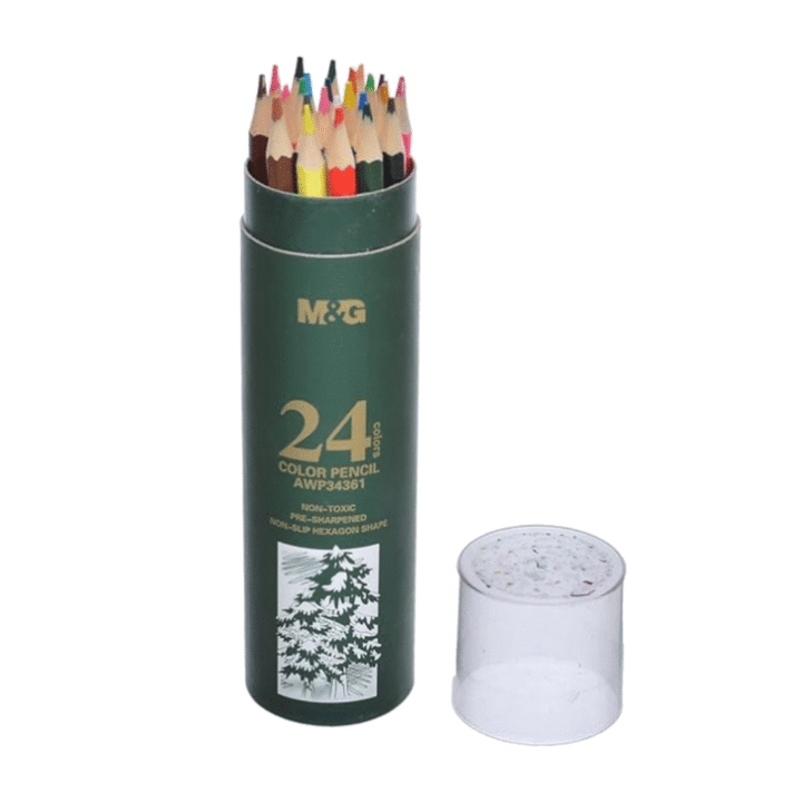 Ce coffret M&G contient 24 crayons de couleur aux mines riches et résistantes, réunis dans un tube rigide au design sobre et élégant. Idéal pour les artistes, les élèves et les amateurs de dessin, il allie fonctionnalité et esthétisme.