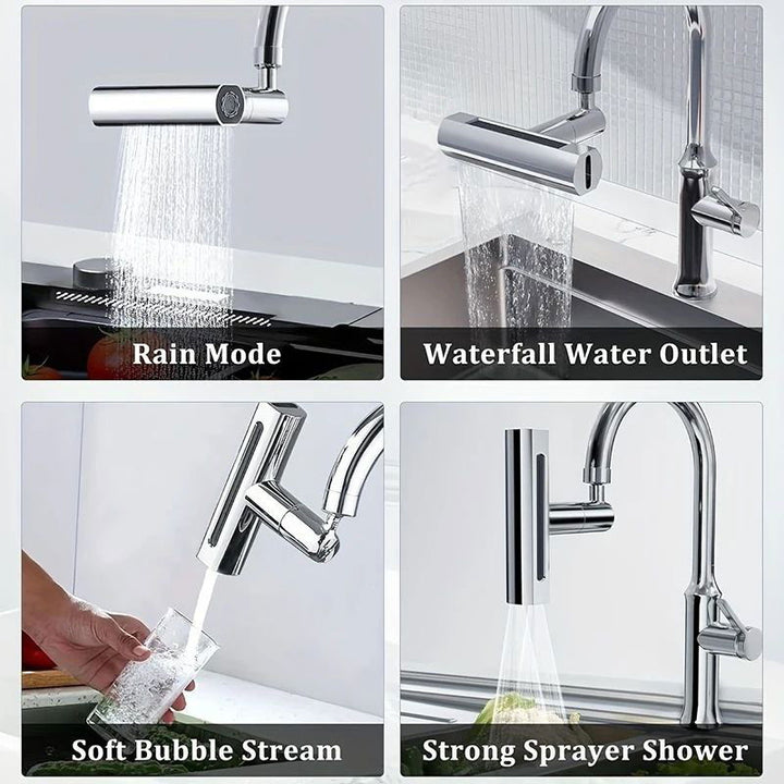 - Pivot à 360° : L’embout peut tourner librement, vous permettant de diriger l’eau facilement pour un lavage plus pratique dans l’évier.