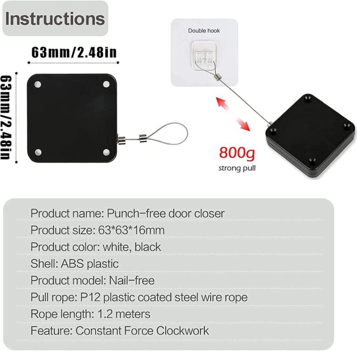 Simplifiez la fermeture de vos portes sans outils ni perçage avec ce ferme-porte automatique sans clou ni vis. Idéal pour la maison ou le bureau, il utilise un mécanisme à ressort à force constante pour refermer en douceur portes et placards.