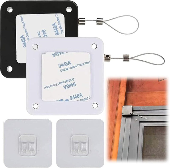 Ferme-Porte Sans Perçage – Câble Acier 1,2 m | Fixation Autocollante