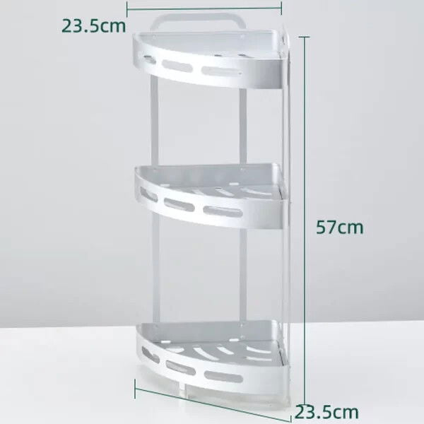 Optimisez vos espaces de rangement avec cette étagère d’angle en aluminium à 3 étages, idéale pour organiser votre salle de bain, cuisine ou tout autre espace nécessitant une solution de rangement pratique. Son design triangulaire s’intègre parfaitement dans les coins, tout en offrant une capacité généreuse sur trois niveaux. Avec une hauteur totale de 57 cm et une largeur de 23,5 cm, elle est à la fois compacte et spacieuse, vous permettant d’organiser vos accessoires et produits de manière ordonnée.