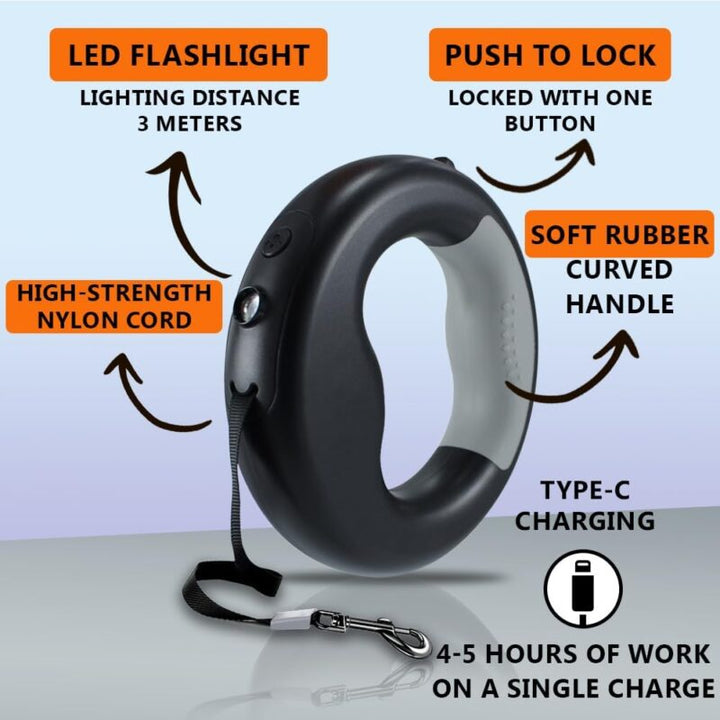 Laisse Rétractable avec Lampe LED – Sécurité et Confort pour Vos Promenades