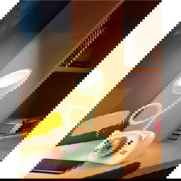 Le design de dessin animé mignon ajoute une touche de fantaisie à votre espace, que ce soit sur votre bureau, table de chevet ou dans la chambre d’enfant. De plus, la lampe est équipée d’un porte-stylo pratique et d’un taille-crayon intégré, vous offrant un rangement fonctionnel pour vos instruments d’écriture.