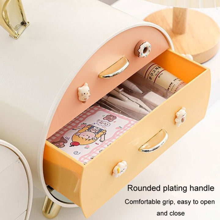 Ajoutez une touche de fantaisie et d’organisation à votre espace avec cette mini commode de rangement à tiroirs, parfaite pour ranger vos petits accessoires, bijoux ou fournitures de bureau. Avec son design ludique en forme ronde et ses poignées décoratives adorables, cette commode est à la fois un objet fonctionnel et décoratif. Ses trois tiroirs spacieux permettent de garder vos objets bien organisés, tout en apportant une touche de couleur à votre espace.