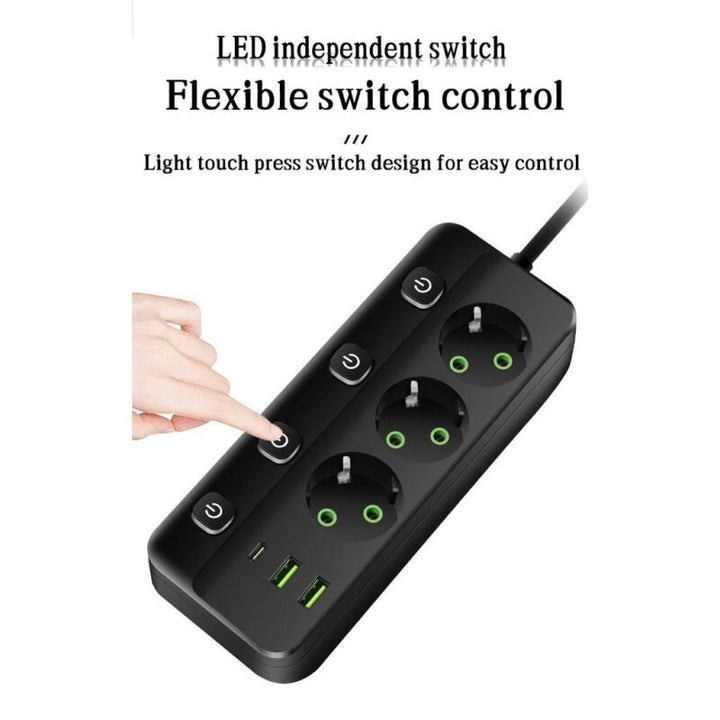 Multiprise Intelligente avec Interrupteurs Indépendants – 3 Prises + 2 Ports PD + 2 Ports USB | 2.4A | Charge Rapide