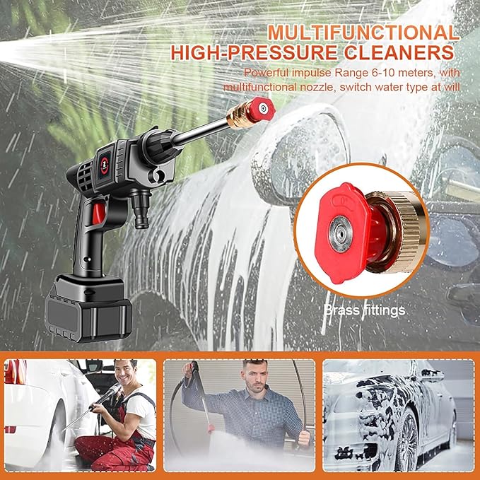 Profitez d’un nettoyage efficace et sans contraintes avec ce nettoyeur haute pression sans fil, équipé de 3 batteries 48V pour une autonomie prolongée. Idéal pour le lavage des voitures, motos, terrasses, fenêtres et autres surfaces, il fonctionne avec une aspiration autonome, vous permettant d’utiliser n’importe quelle source d’eau : seau, bouteille, rivière, etc.