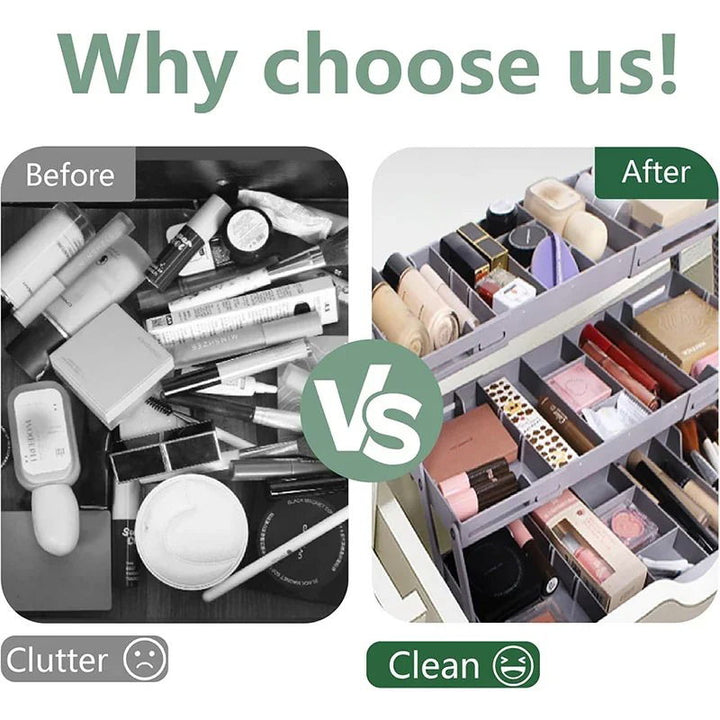 • Design extensible et pliable : S’adapte facilement à la taille de votre tiroir pour un rangement optimal.