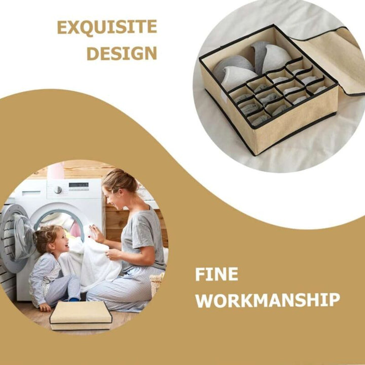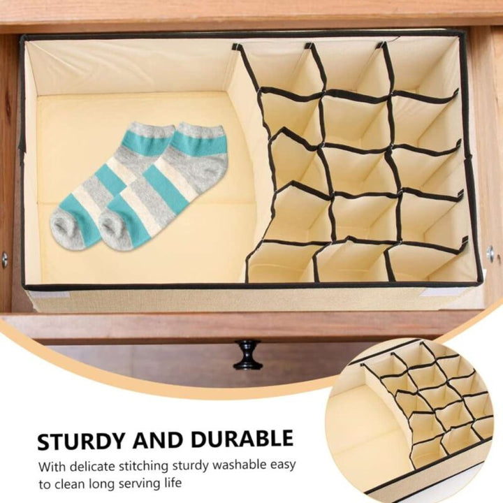 Organiseur de tiroir pliable – 12 compartiments | Rangement chaussettes, sous-vêtements et accessoires – Beige