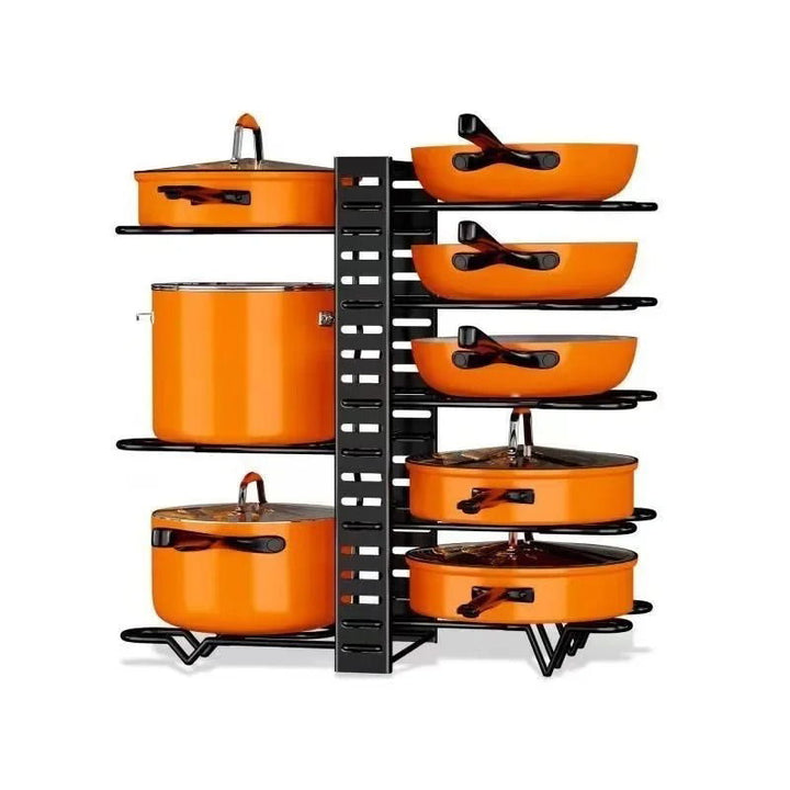Optimisez l’espace dans vos placards et gardez votre cuisine bien rangée avec ce support de rangement pour casseroles et poêles, conçu pour accueillir jusqu’à 8 ustensiles de cuisson. Grâce à sa structure métallique robuste et ses niveaux réglables, il s’adapte à toutes les tailles de casseroles, poêles, couvercles ou moules.