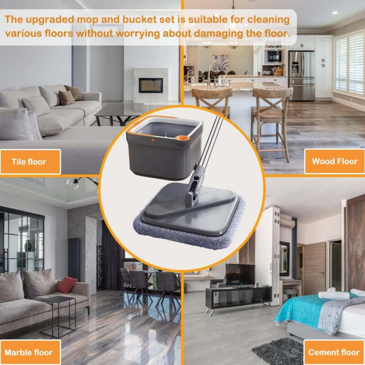 Grâce à son système d’essorage automatique et sa serpillière en microfibre ultra-absorbante, il nettoie efficacement tous types de sols : carrelage, parquet, marbre, ciment… 🏠
