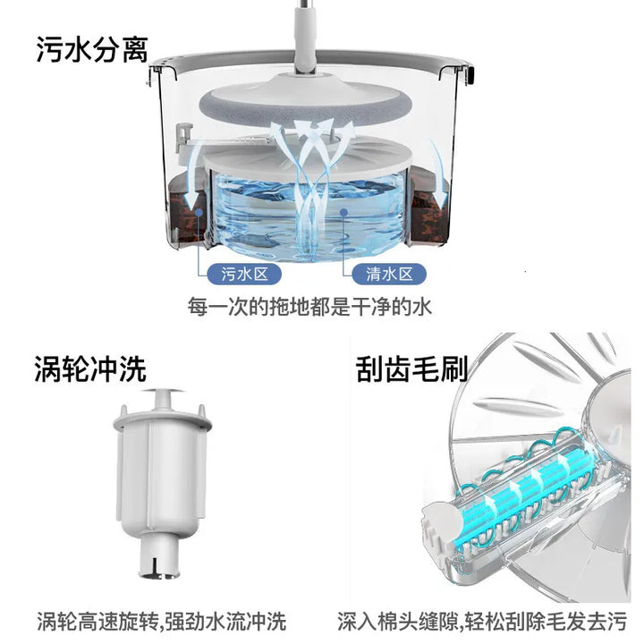 • 🔄 Essorage automatique : rotation rapide pour sécher la serpillière sans effort