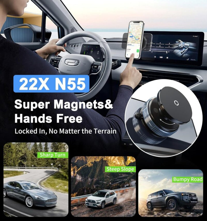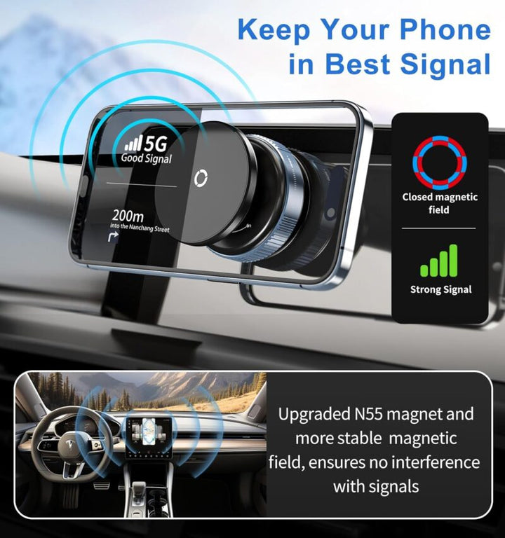 • 🧲 Magnétisme puissant : maintien sécurisé de votre téléphone, même sur routes cahoteuses.
