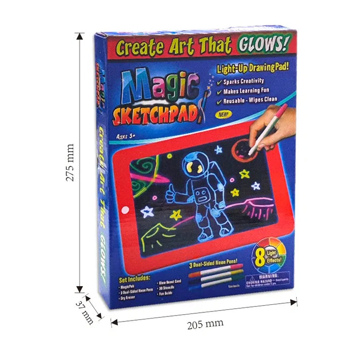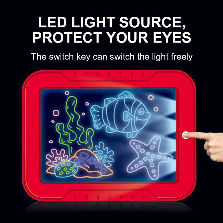 Offrez à votre enfant une expérience de dessin unique et ludique grâce à notre tablette de dessin fluorescente à LED ! Conçue pour éveiller l’imagination et stimuler l’apprentissage, cette ardoise lumineuse transforme chaque dessin en une véritable œuvre d’art colorée, idéale pour développer la motricité fine, la créativité et la confiance en soi.