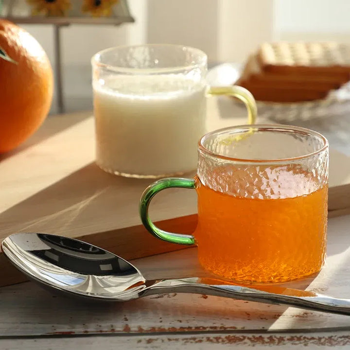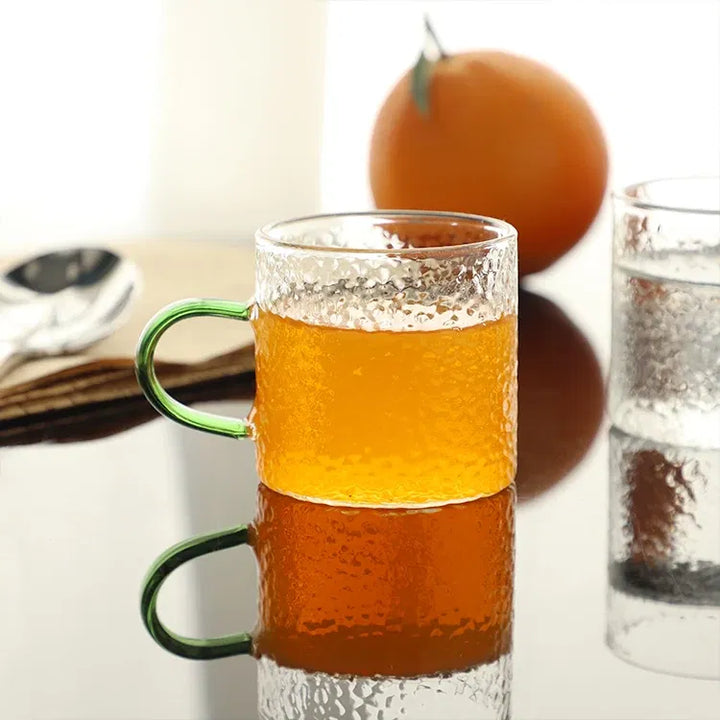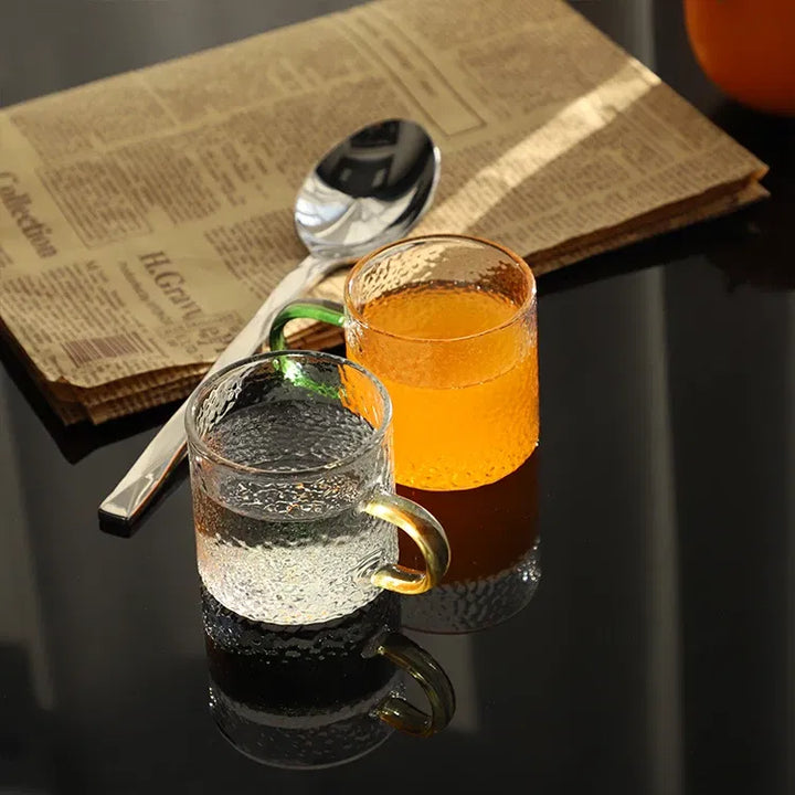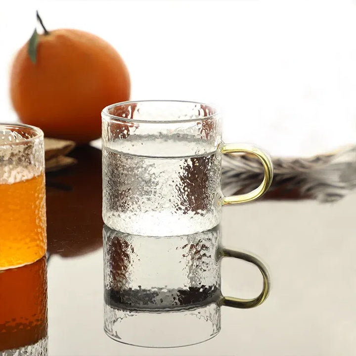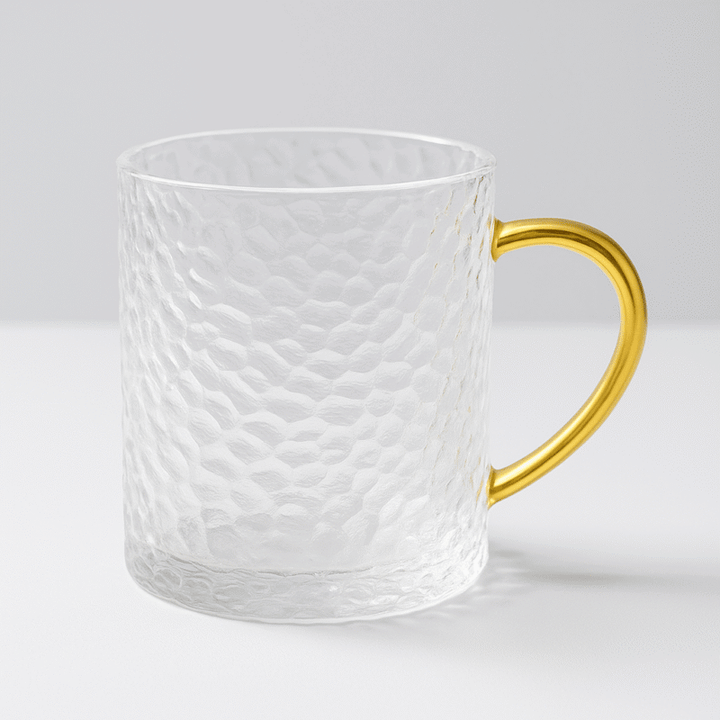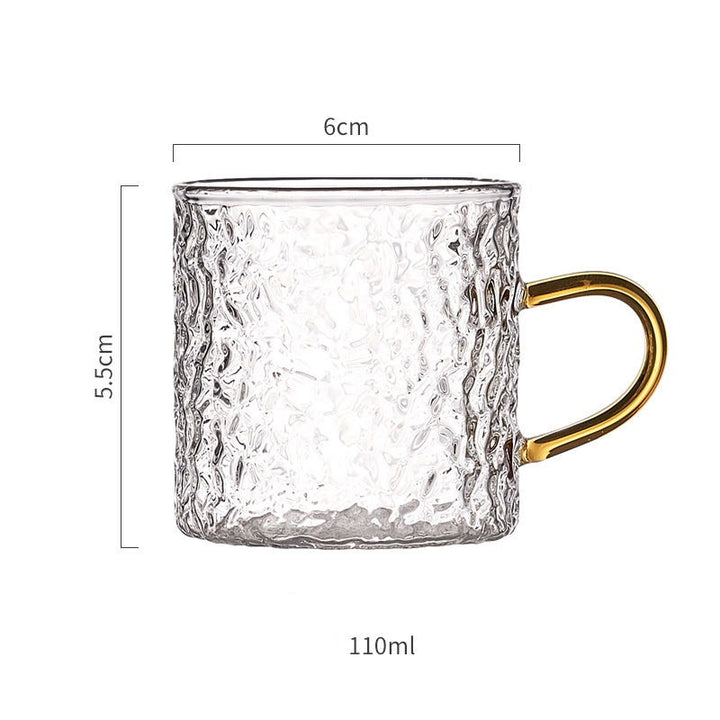Tasse en Verre Martelé avec Anse En Verre Dorée – 110 ml